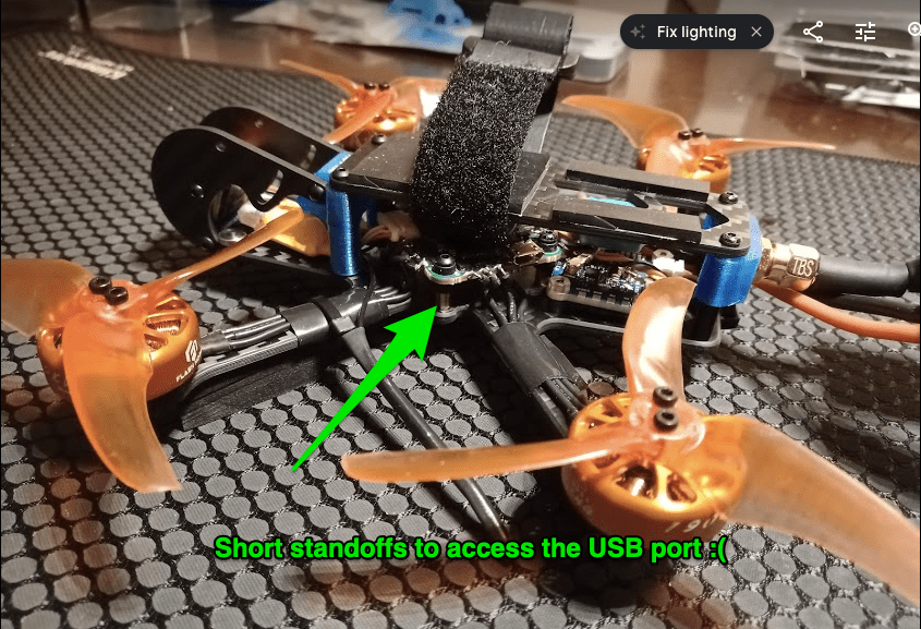 I did a first flight with a insta360 go on it. It all looked fine except a bit of prop wash coming down from dives. The below is with 3.5″ props on.