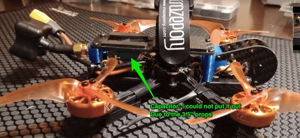 The basic idea was to have an about 3″ but a bit over powered. In particular I wanted to use 2004 motors to test the fact that with less resistance on props a “larger” motor could pick up as fast as a torque dedicated motor. As there is no results yet, I just list here the build.